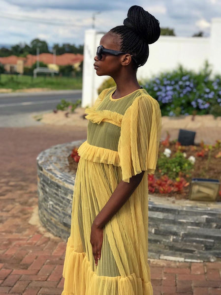 Transparent Yellow Mesh Dress